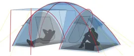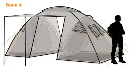 Canadian Camper SANA 4 — это кемпинговая палатка с двумя спальными отделениями, разделёнными просторным тамбуром. Внутреннее пространство можно организовать под себя: установить только один тент, одну спальню или сразу две — в зависимости от потребностей. По всей площади предусмотрены антимоскитные сетки, два входа с сетками и защитная юбка по периметру. Дверь тамбура при необходимости превращается в козырёк над входом. Пол для тамбура в комплект не входит, его докупают отдельно.Бренд: Canadian Camper