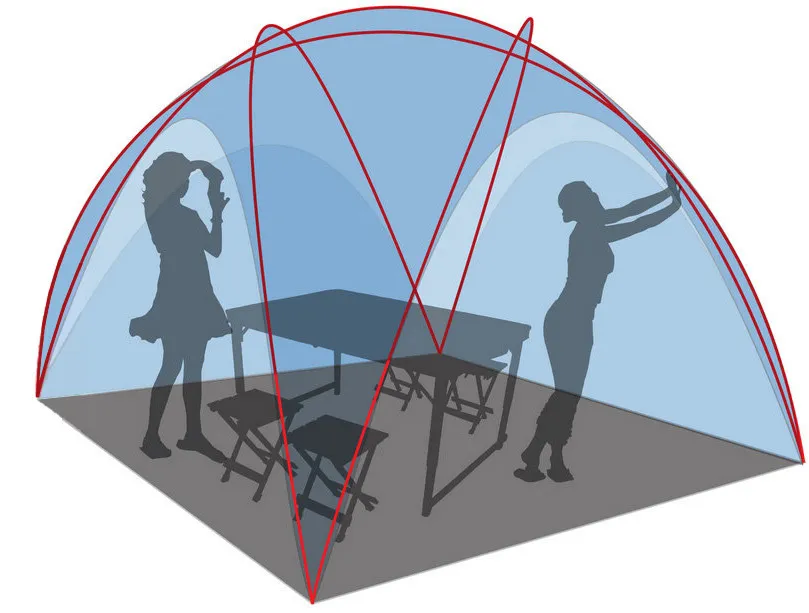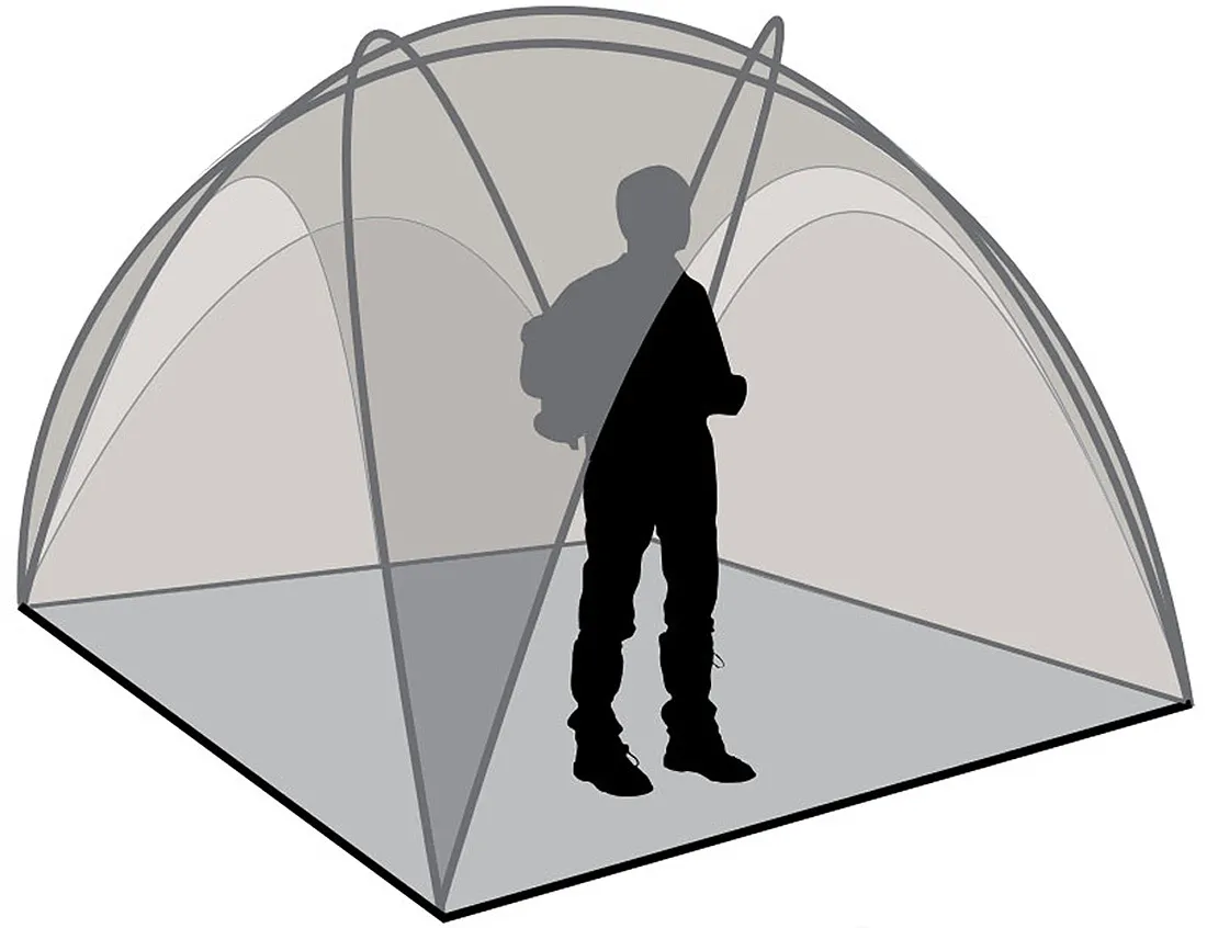 Canadian Camper SPACE ONE — это шатёр на каркасе из фиберглассовых дуг сферической формы. Его используют не только как тент для отдыха на природе, но и как экспедиционную палатку — например, геологи и археологи ценят его за надёжность в полевых условиях. Сборка простая: дуги продеваются в кармашки тента, фиксируются в люверсах, а крючки тента защёлкиваются на дугах. Благодаря такой конструкции шатёр легко собирается и разбирается, а сферическая форма обеспечивает хорошую ветроустойчивость.Бренд: Canadian Camper